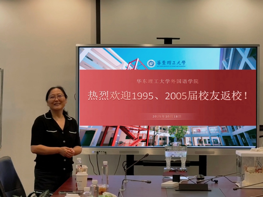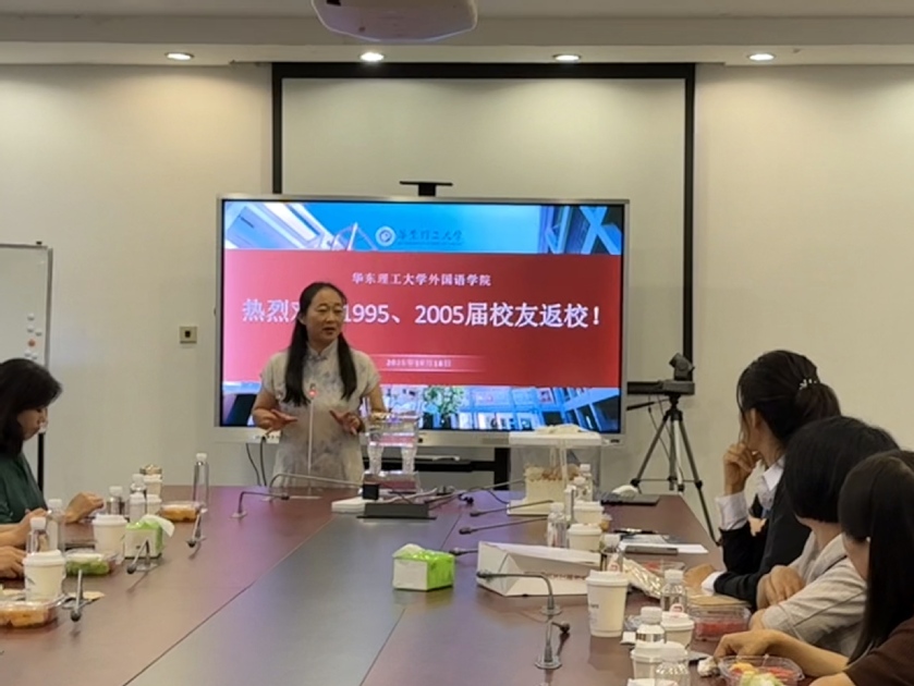 金秋送爽,情系母校。10月18日,华东理工大学外国语学院成功举办1995届、2005届校友返校活动。来自各行各业的校友代表重返校园,欢聚一堂,共话往昔,畅谈未来。学院原院长余毓国、党委书记王喆、党委副书记杨雅伟、副院长赵蔚、95届、05届校友代表以及学院教师代表贾卉,毕业班辅导员侯月等40余人出席了本次活动,现场气氛温馨而热烈。